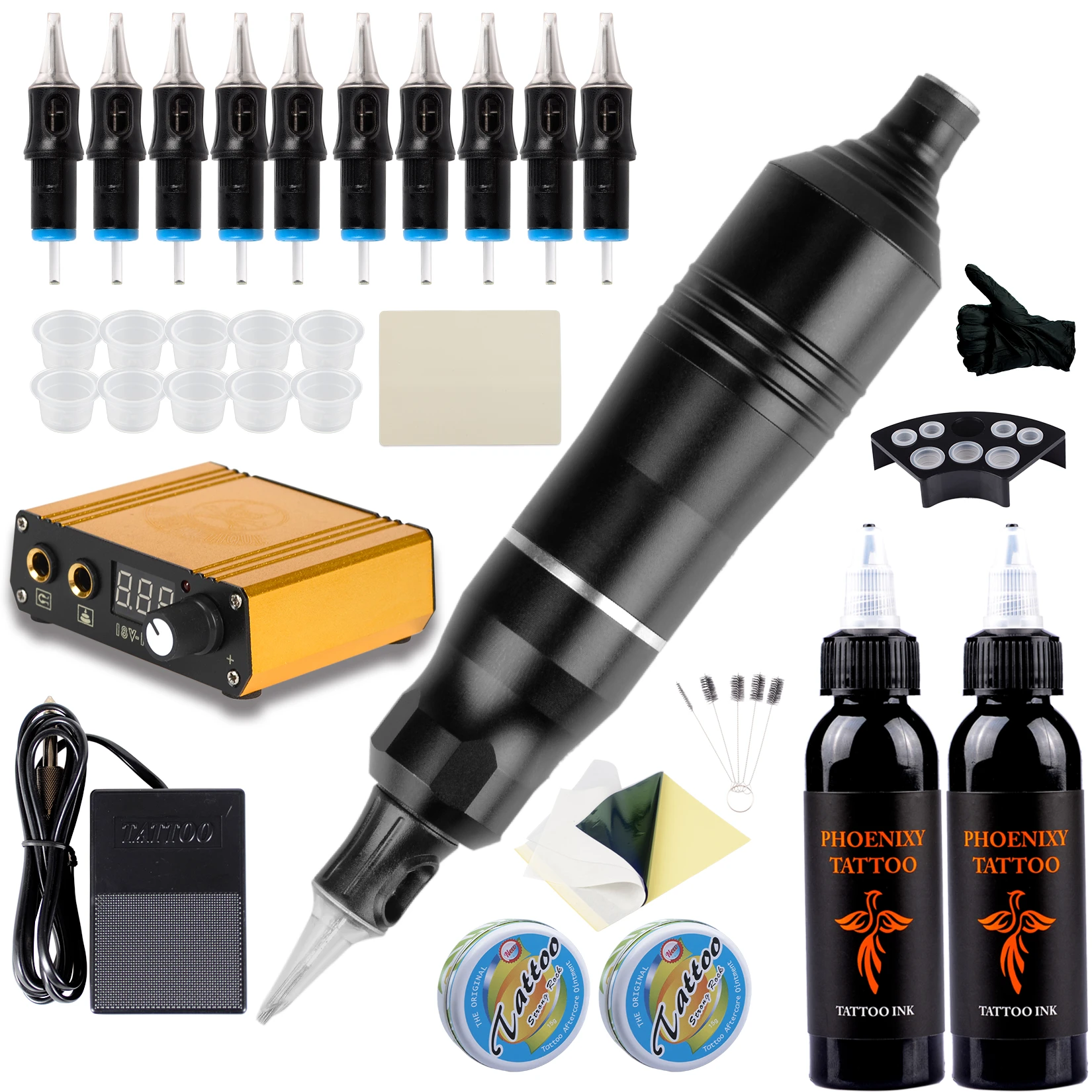 The products include tattoo machines tattoo power supplies tattoo needles permanent makeup machines and so on. Dragonhawk complete tattoo pen machine kit atom m3 gun 40pcs cartridges needles power supply set 340 5p 2 regular price 10299 save 10299 shipping calculated at checkout.